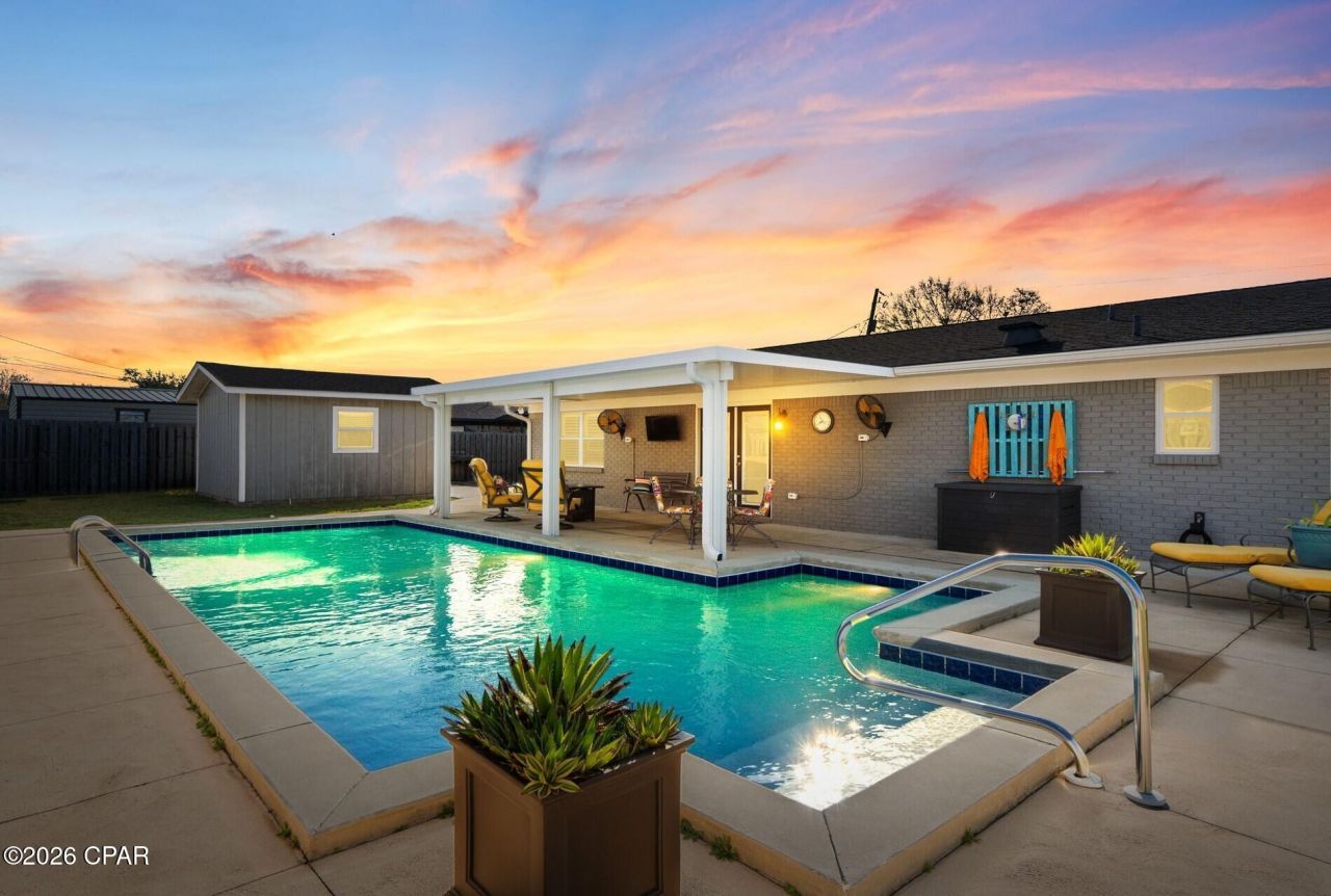 This fully renovated pool home offers exceptional value in a prime location near shopping, dining, and entertainment. Fully renovated to include a new roof (2020) and additional 2024 improvements featuring redesigned living spaces with recessed lighting, a new driveway, and Bahama shutters. The open-concept layout showcases a spacious kitchen with gas cooking, granite countertops, and a center island, while the primary suite includes a private ensuite bath with granite finishes. Outside, enjoy a pool with new pump, covered patio with ceiling fans, and a private fenced backyard perfect for relaxing or entertaining. Additional highlights include a detached workshop- building ideal for a home office or studio, an extended driveway with RV/boat parking and electrical outlet, and convenient access to Tyndall AFB (4 miles), Historic Downtown (5 miles), and the world's most beautiful beaches (25 minutes).