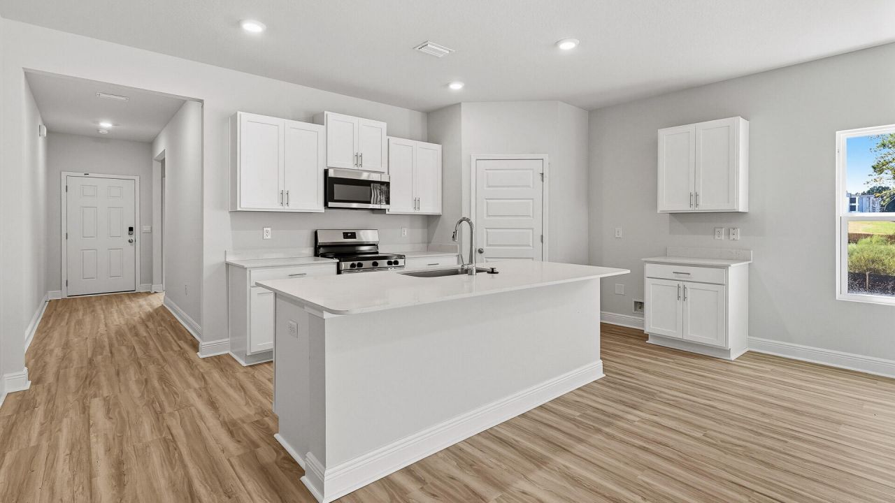 The Creekside model is a spacious and desirable open concept floorplan, built-in lighting and a fabulous layout for relaxed living featuring 5 bedrooms, 3 bathrooms, 2-car garage, and the 'Smart Home Connect 'System with a variety of convenient Smart Home devices you will love. Spacious Great Room and dining area is open to the kitchen and lots of windows for natural lighting. The well-designed open kitchen includes stainless steel appliances, a smooth-top range, built-in microwave, quiet dishwasher, corner pantry, island bar, eye-catching wood-look flooring, and plush carpet in the bedrooms. A well designed and highly desirable floorplan with many desirable amenities. Fabric Hurricane door and window protection is also included. ALL LISTING pictures, colors, features, and size may vary. Square footages are approximate.