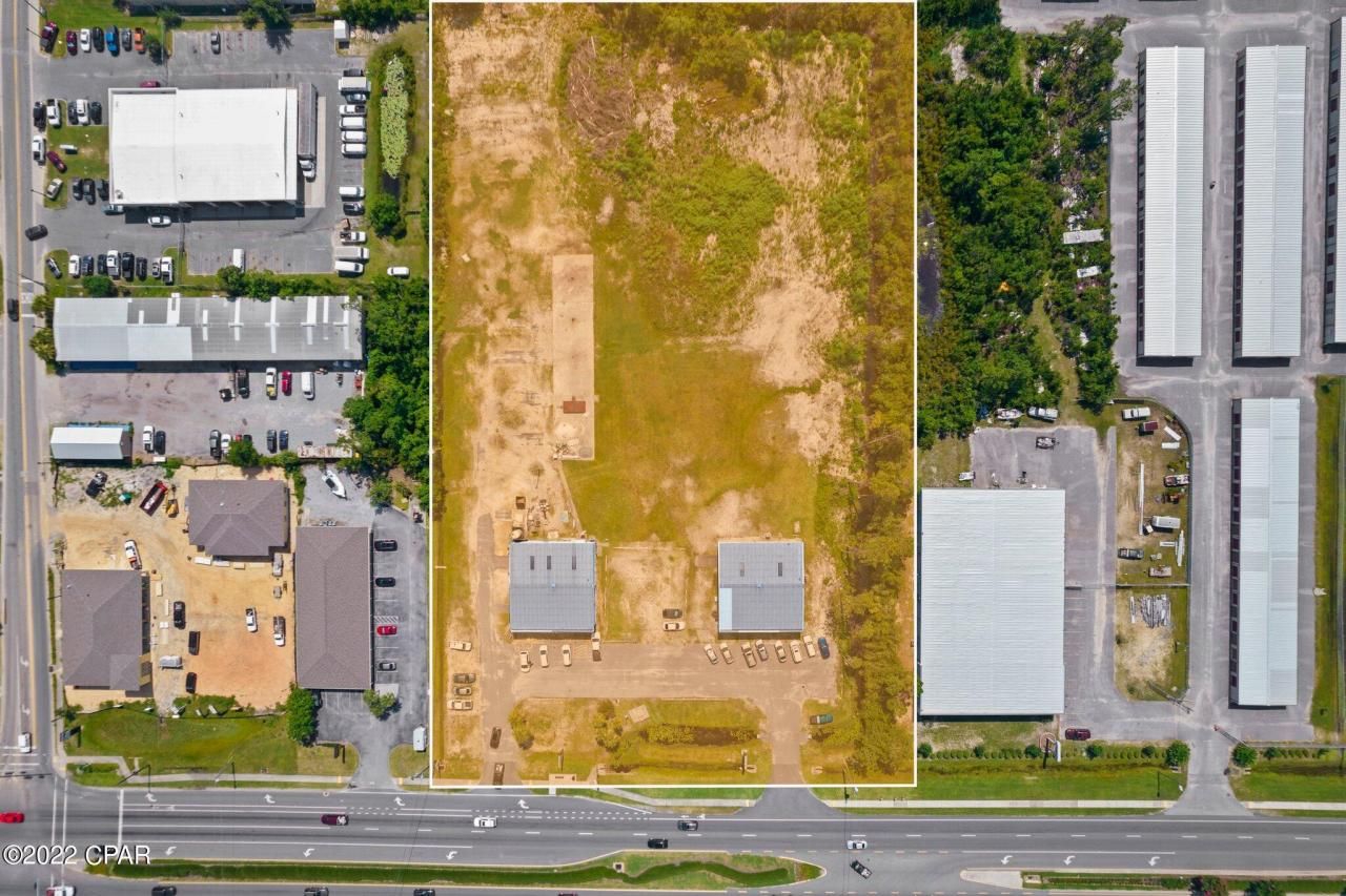 Owners will divide! Desirable 4. 2 acre property located on busy Hwy 77 in Panama City. There is 330' of road frontage on Hwy 77 with ingress and egress in two locations. Annual average daily traffic count is 30,098 vehicles. The property consists of two metal 60' x 60' retail buildings complete with finished interior space and covered warehouse storage. There is parking at each building and a driveway between. There is no direct cut in the median at this location, but the cut is very nearby so turning in from the opposite side of the road is fairly easy. The back portion of the property is vacant land except for a cement slab where an additional storage building used to be. The sellers retail business is not for sale only the buildings and property. The other business onsite is in a month to month lease. Please do not disturb these tenants. The property has a Panama City address but was annexed by the city of Lynn Haven, so utilities and taxes are through Lynn Haven. Lots of potential with this size lot for teardown and redevelopment as Office, Hotel, Retail, Restaurant, Multi-Family, etc. Sellers will consider owner financing with 20% - 25% down and a 5 year balloon.