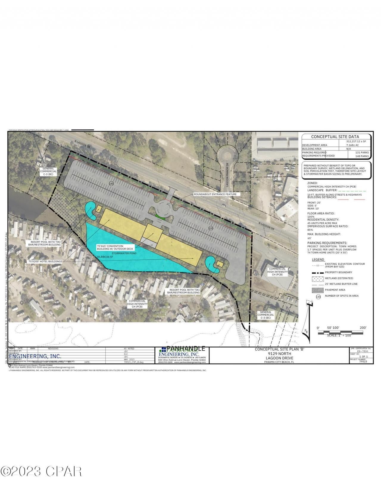 7 Acres in the Heart of Panama City Beach located across from Signal Hill Golf Course. Prime location for a hotel, multifamily development or resort. Almost 900 feet along North Lagoon, you are less than 1500 feet to the beach. This property is located in the Tourist District and is zoned Commercial High Intensity. The property can be developed for up to 200 hotel rooms or 74 townhome units. Conceptual Renderings are available. Topo and Boundary Survey on File.